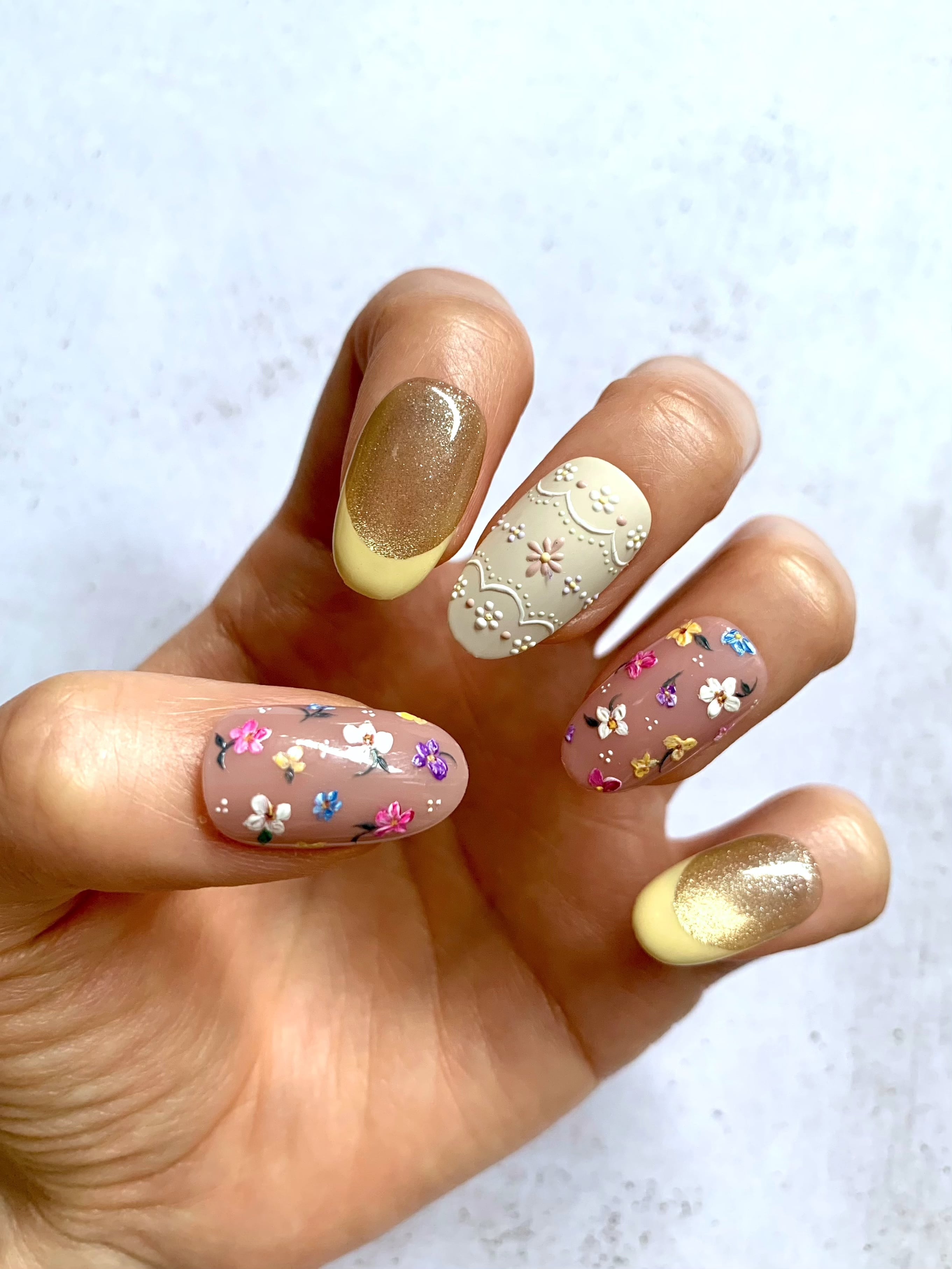 手描きのフラワーネイルと、トレンドのマグネットネイルのデザイン❁
