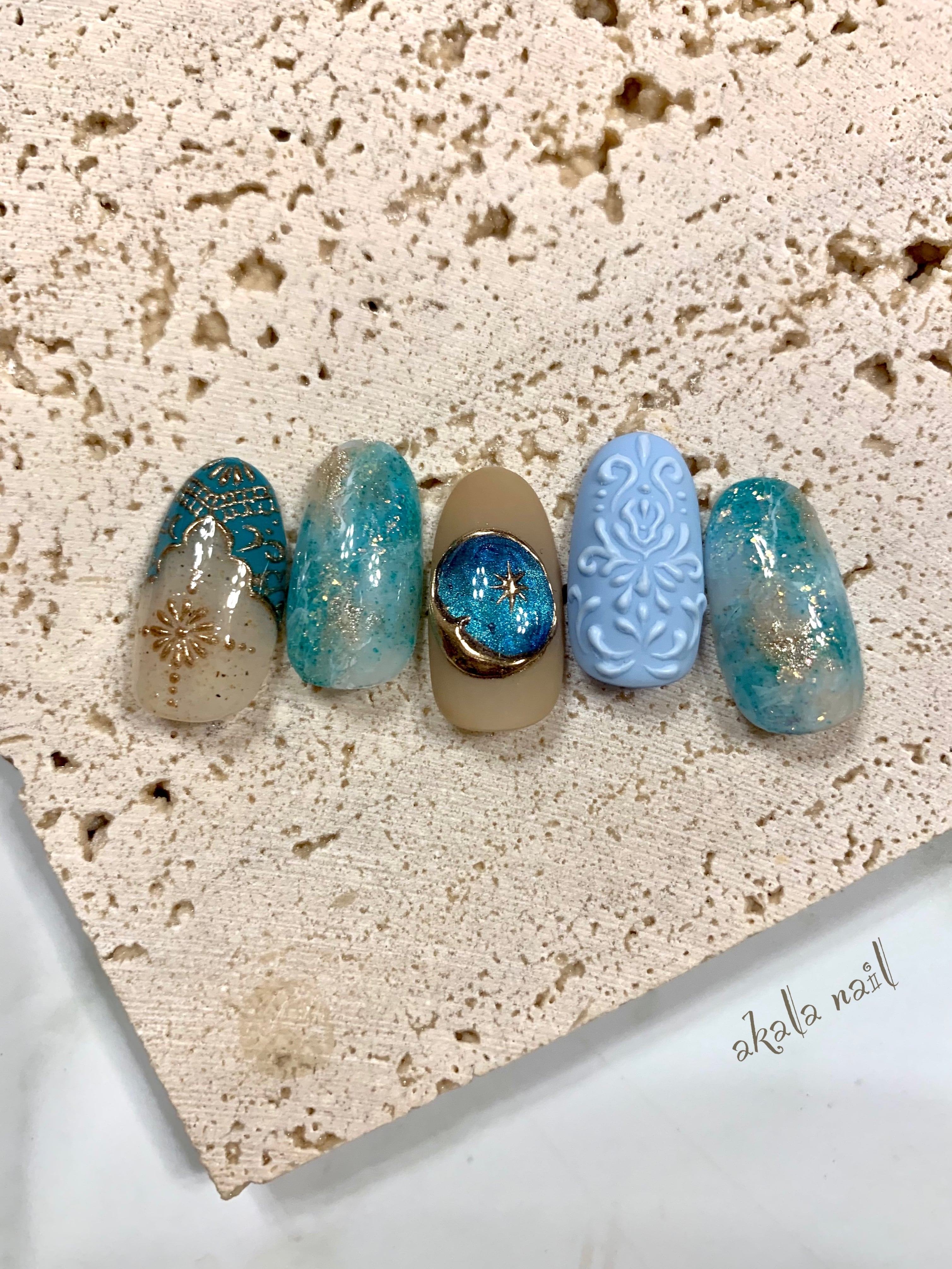 ニュアンスアートも、まるで南国のビーチのような奥行き感、キラキラ感がとても綺麗です( •̤ᴗ•̤ )♡
