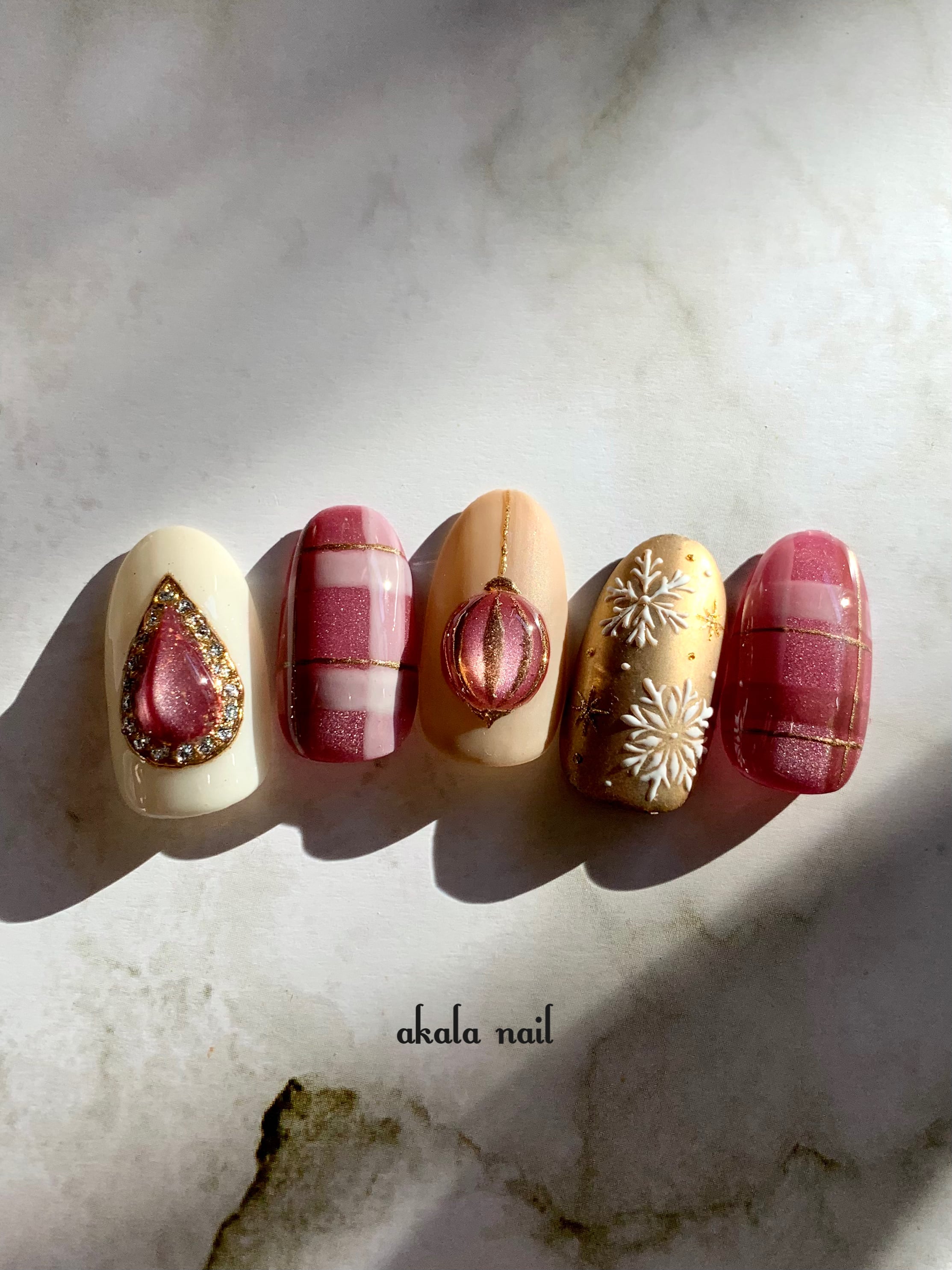 全て手描きのクリスマスのオーナメントとジュエリーが輝くマグネットネイルデザイン✰✰